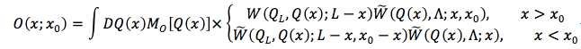 一一对应)的热核方法对波统计进行研究。例如,当非均匀性由嵌入介质内部深度x0的反射镜(附图)引起时,可把深度x处的任意物理量或其统计分布O(x;x0)用热核: