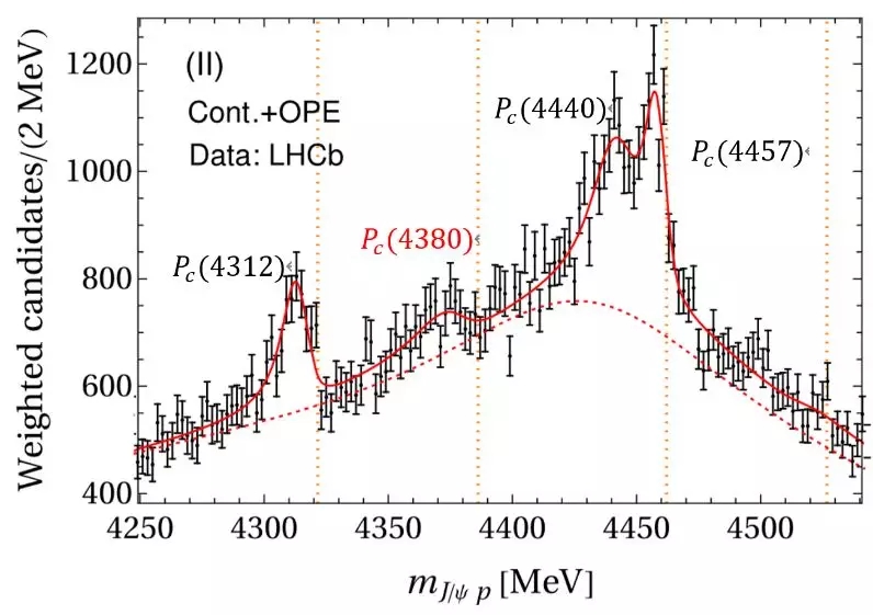 2019年,LHCb实验采用比2015年发现和时高一个量级的数据量,公布了出乎意料的新实验结果。他们发现存在更精细的结构,是由两个宽度更小的结构组成的,即和;此外,他们还发现了一个质量更小的。这一发现立即引发了大量理论研究,其中很多工作认为这些结构可能是由一个粲重子和一个反粲介子组成的强子分子态。这是类似于质子和中子形成的原子核的一种复合粒子。2010年,邹冰松研究员、吴佳俊博士以及他们的西班牙合作者率先提出存在质量4GeV以上的由粲重子和反粲介子形成的强子分子态。
