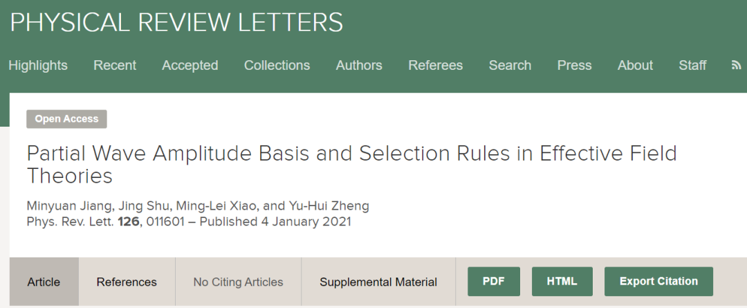 这一研究发表在最新的Phys.Rev.Lett. 126 (2021), 011601上。该项研究得到了国家自然科学基金重大项目、杰出青年基金、理论物理专款“彭桓武理论物理创新研究中心”和中科院战略先导科技专项(B)的支持。