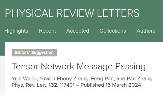 针对这个难题,ld体育网页端 张潘课题组系统地发展了任意图的张量网络方法[1-4],涵盖了从严格到近似、从固定线路到通用的张量网络网络的众多情形。进一步,张潘研究员及其硕士生王一佳、伦敦大学学院博士生张钰雯与新加坡国立大学博士后潘峰(此前为ld体育网页端 博士生)于近期提出了张量网络消息传递(TNMP)算法。TNMP方法结合了张量网络和消息传递算法的优点,同时解决了短圈和长圈结构所带来的问题。具体来说,TNMP算法在处理局部的多短圈子图时采用张量网络进行缩并,对于全局的多长圈环境则采用消息传递算法进行近似,既利用了张量网络在处理短圈结构时的优势,又保留了消息传递在处理长圈时的高效性,大幅提升了现有算法在宏观物理量计算上的精确度上限与规模上限。TNMP算法也可以被视为终极的圈展开平均场方法,利用张量网络方法严格地处理系统中圈的效应,圈的大小远远超过了例如Plefka展开,Kikuchi变分自由能方法等传统的圈展开平均场理论。