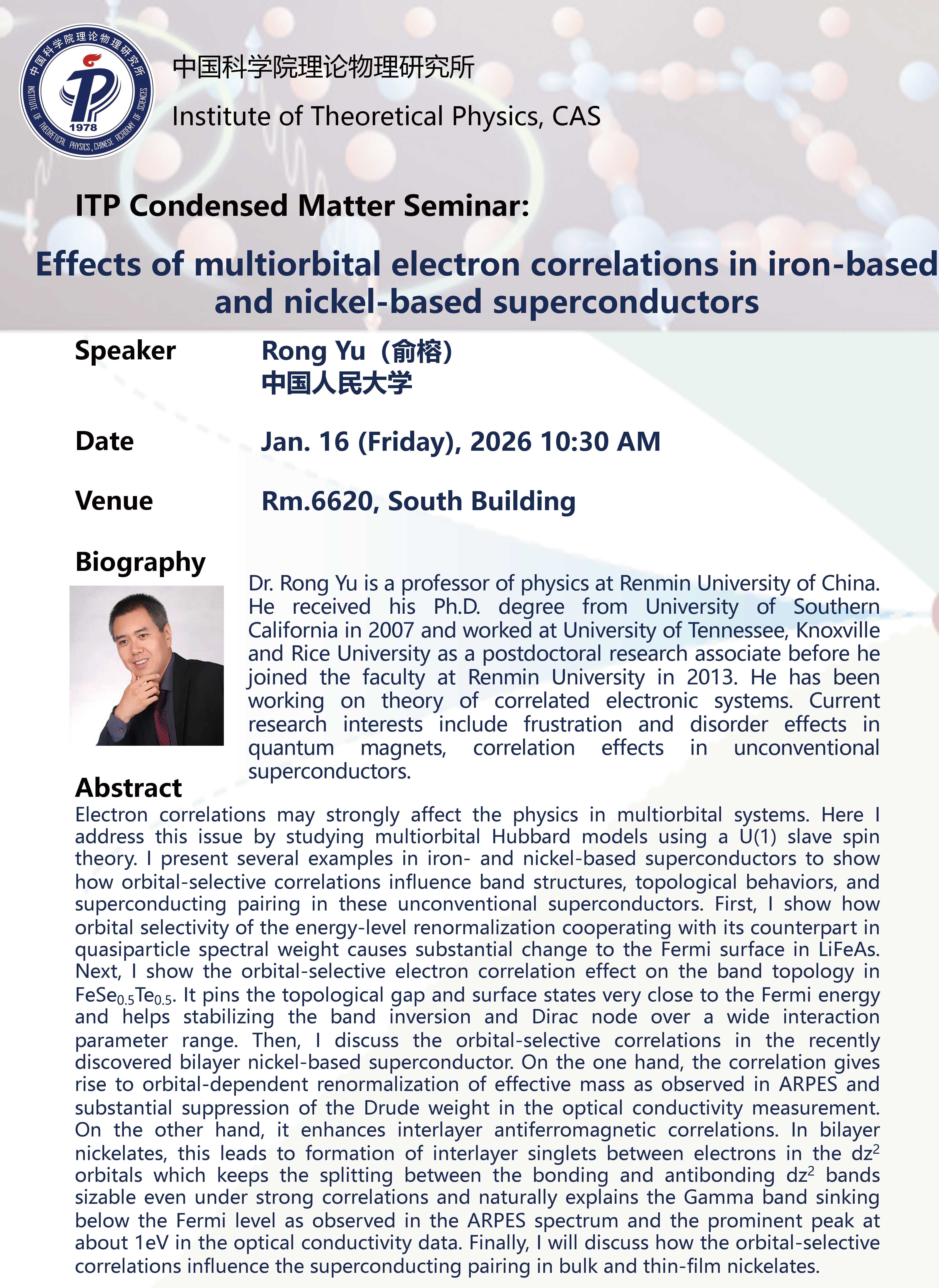 - Title题目 Effects of Multiorbital Electron Correlations in Iron-Based and Nickel-Based Superconductors