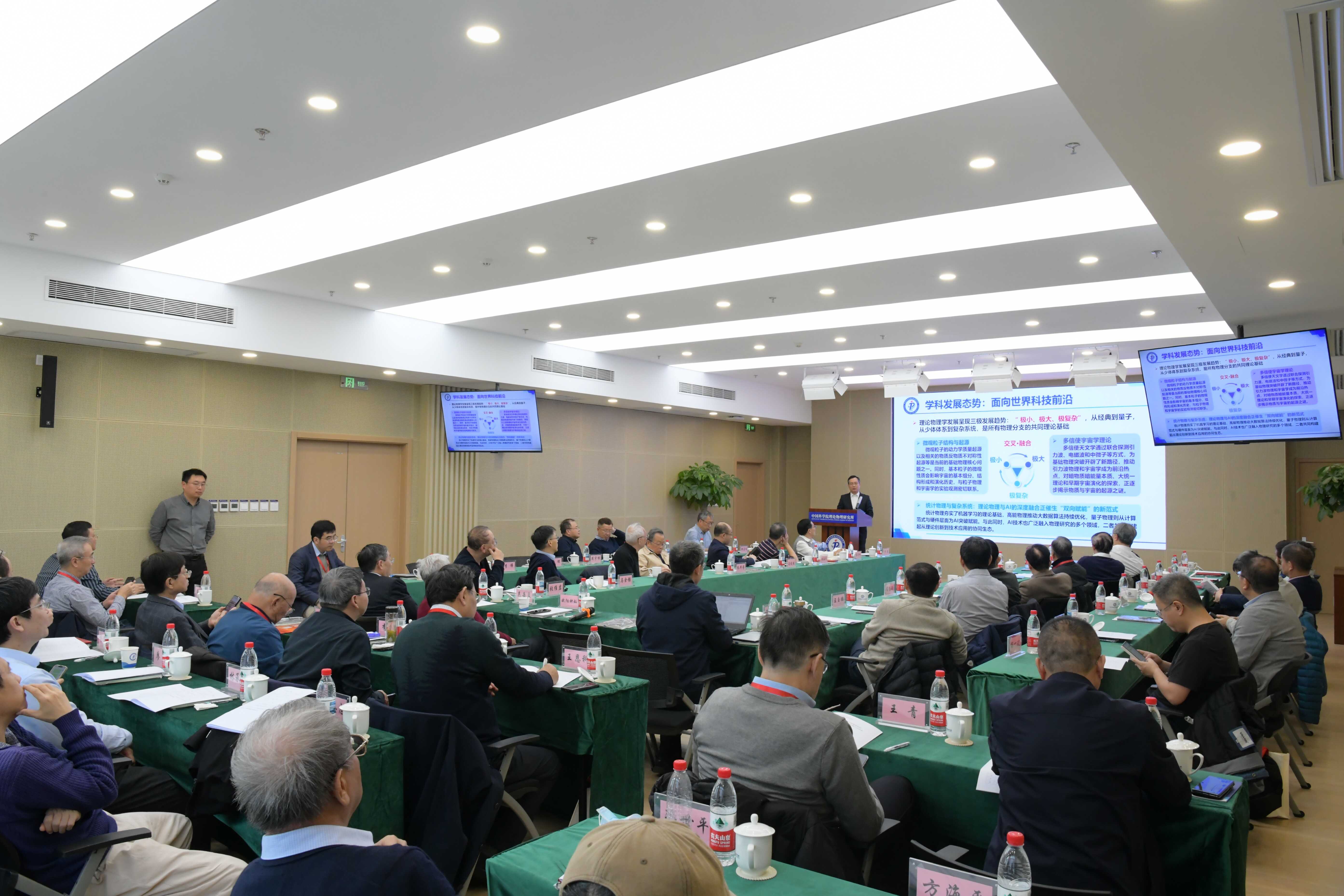 20251111日,ld体育网页端 第十届战略发展委员会第三次会议在理论物理所召开。本次会议聚焦研究所“十五五”发展规划,汇聚国内理论物理及相关领域顶尖专家学者,共商研究所未来五年发展大计。参加会议的专家委员有:战略发展委员会主任欧阳钟灿,副主任吴岳良、向涛、谢心澄、张维岩,委员蔡荣根、段文晖、方忠、封东来、高原宁、龚新高、郭光灿、韩占文、李惕碚、林海青、罗民兴、马琰铭、马余强、万宝年、王玉鹏、邢定钰、叶朝辉、赵光达、赵红卫、朱邦芬、邹冰松、陈晓松、董国轩、方海平、冯世平、何颂、匡乐满、李定、廖益、林承键、罗洪刚、吕广宏、乔从丰、王恩科、王青、王延颋、吴兴刚、邢志忠、杨文力、詹明生、张潘、赵强、周海军、朱世琳。理论物理所所长周善贵、党委书记樊志军、副所长周宇峰以及研究室主任和管理支撑部门负责人列席了会议。中国科学院前沿科学与基础研究局卢宇处长参加了会议。会议由樊志军和欧阳钟灿共同主持。