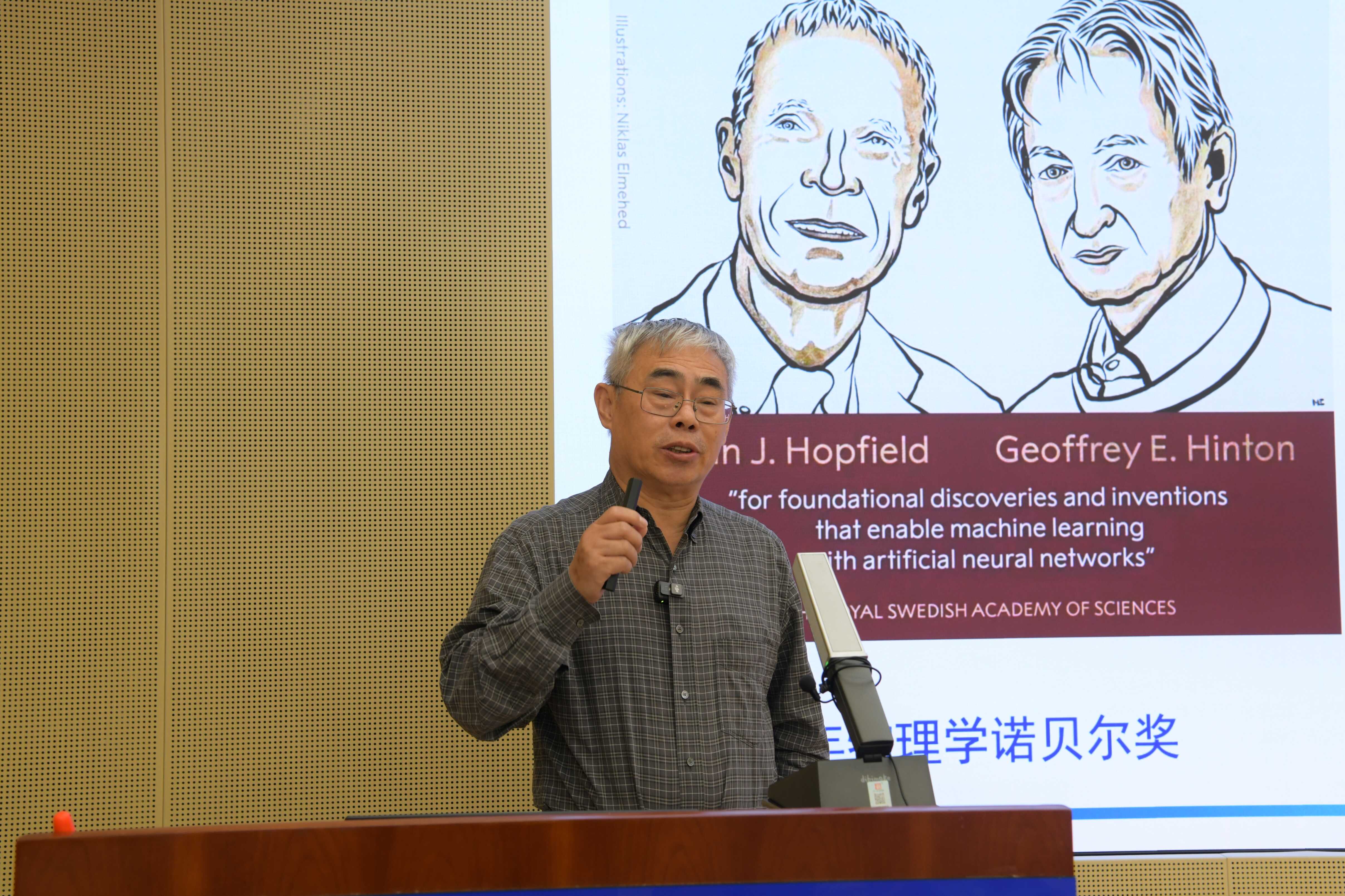 鄂维南、蒲慕明、高文(线上)、孙昌璞、张林峰、吴磊、许志钦、黄海平、陈锟、冉仕举、罗迪和周凯等12位专家做报告介绍最新进展,报告内容涵盖统计物理与机器学习原理、基于量子物理原理的人工智能新模型、人工智能与数学、计算机科学等主题。这些报告为相关领域的研究带来了新的视角和方法,并且通过会议期间的交流和讨论,推动了数理与人工智能的深度融合,激发创新思维,促进学术和技术的突破。会议也为年轻学者和学子提供了与领域专家交流的机会,帮助他们更好地理解当前的研究趋势和挑战,在未来成长为具有跨学科背景的创新人才。