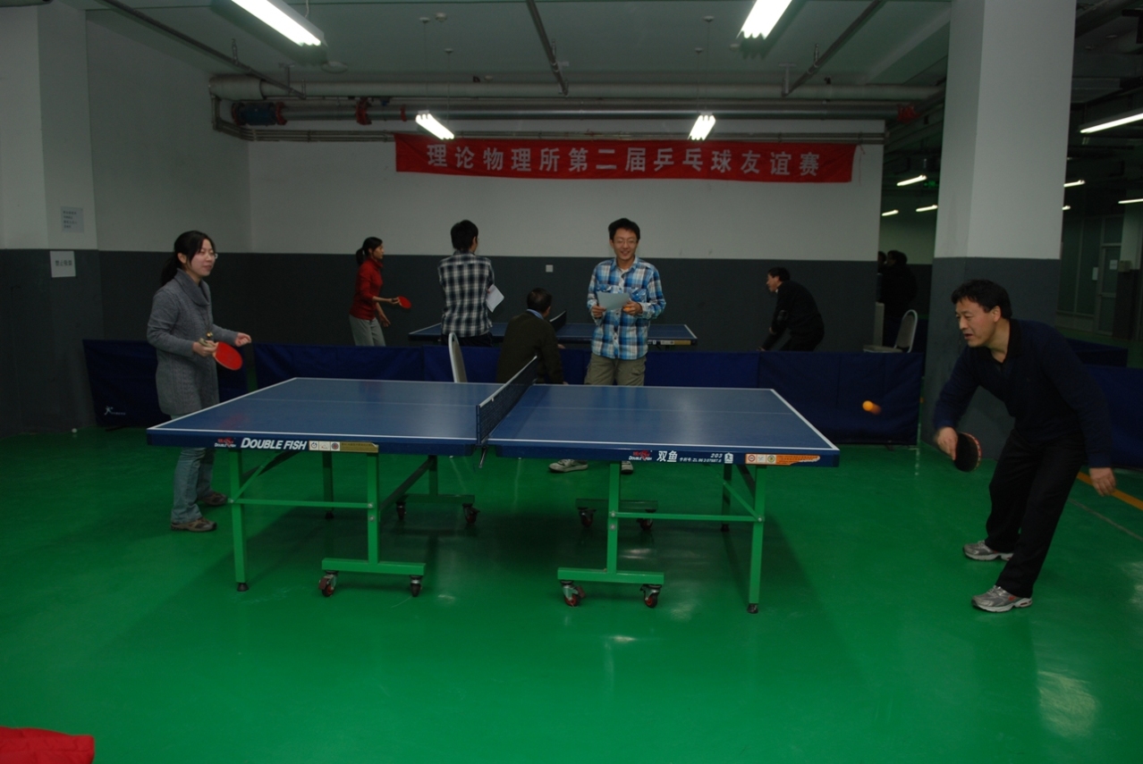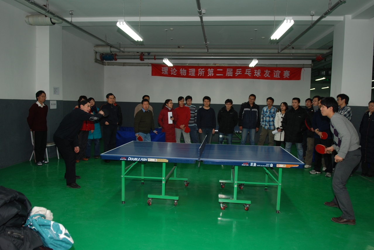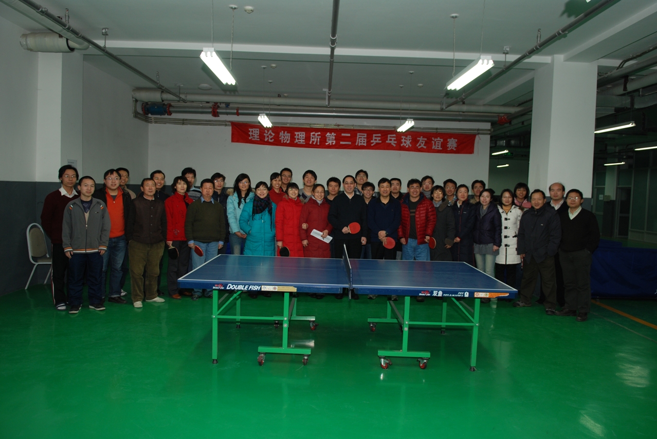 为增强全所人员间的交流,促进全民健身,增强大家的体质,2009年12月25日至2010年1月8日,所工会、团学会联合组织了理论物理研究所第二届乒乓球友谊赛。比赛分三个阶段,小组赛、男女混合24强晋级赛和男女决赛,全部利用午饭后的业余时间进行。