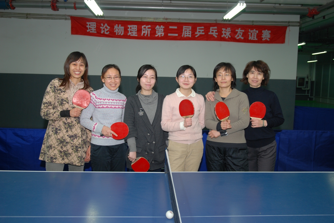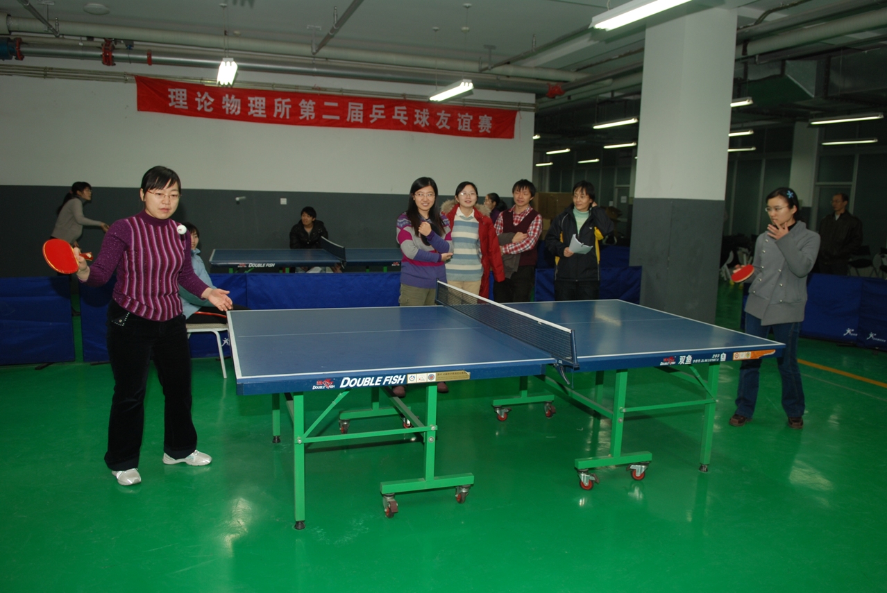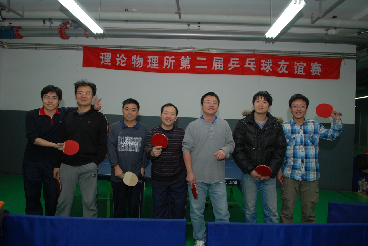 为增强全所人员间的交流,促进全民健身,增强大家的体质,2009年12月25日至2010年1月8日,所工会、团学会联合组织了理论物理研究所第二届乒乓球友谊赛。比赛分三个阶段,小组赛、男女混合24强晋级赛和男女决赛,全部利用午饭后的业余时间进行。