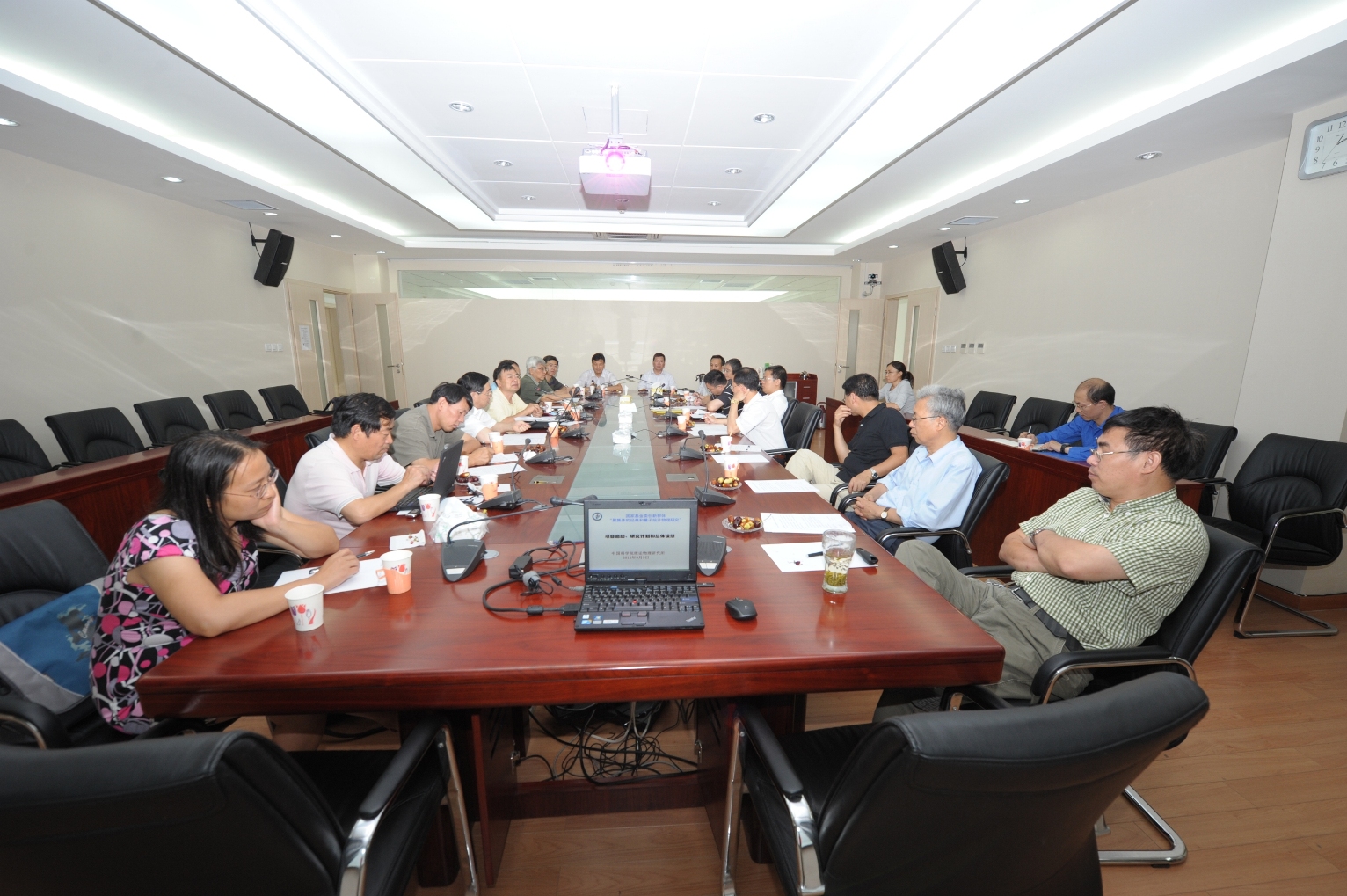 群体项目负责人孙昌璞院士代表群体针对群体未来三年总体研究计划和设想做了报告,同时提出了群体目前所面临的研究相对分散的问题;随后群体中四位较年轻的骨干周海军、史华林、覃绍京和易俗分别就各自的研究课题及如何与其他成员融合互补等方面作了专门的报告。报告结束后全体与会成员就群体所面临的问题及接下来的发展展开了讨论。考察组希望该群体成员在保持各自研究特色的基础上加强沟通合作,发挥团队优势,最终通过若干年努力,能在经典和量子统计物理研究交叉领域形成具有国际影响力的学术群体。