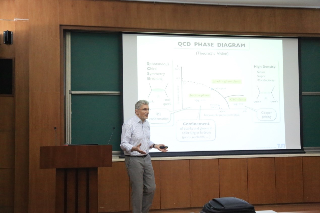 7月31日上午,欧洲理论研究中心(ECT*)主任Wolfram Weise教授来我所访问。邹冰松所长,陈晓松副所长和周善贵研究员会见了Wolfram Weise教授。邹冰松所长首先向 Weise教授介绍了理论物理所科研人员情况,以及开展各类科研活动的情况。Weise教授也详细介绍了ECT*的科研活动和访问科学家计划。为了更好地促进双方合作开展科研活动和推动科研人员之间的互访交流,双方签订了合作协议。 最后,Weise教授还做了题为“Phases of Strongly Interacting Matter”的学术报告。 注:ECT* 全称European Centre for Theoretical Studies in Nuclear Physics and Related Areas , 位于意大利特伦托,主要举办短期研讨会、国际会议和开展访问科学家计划。
