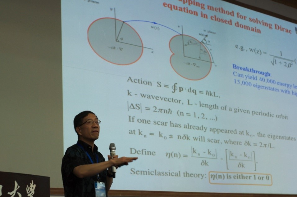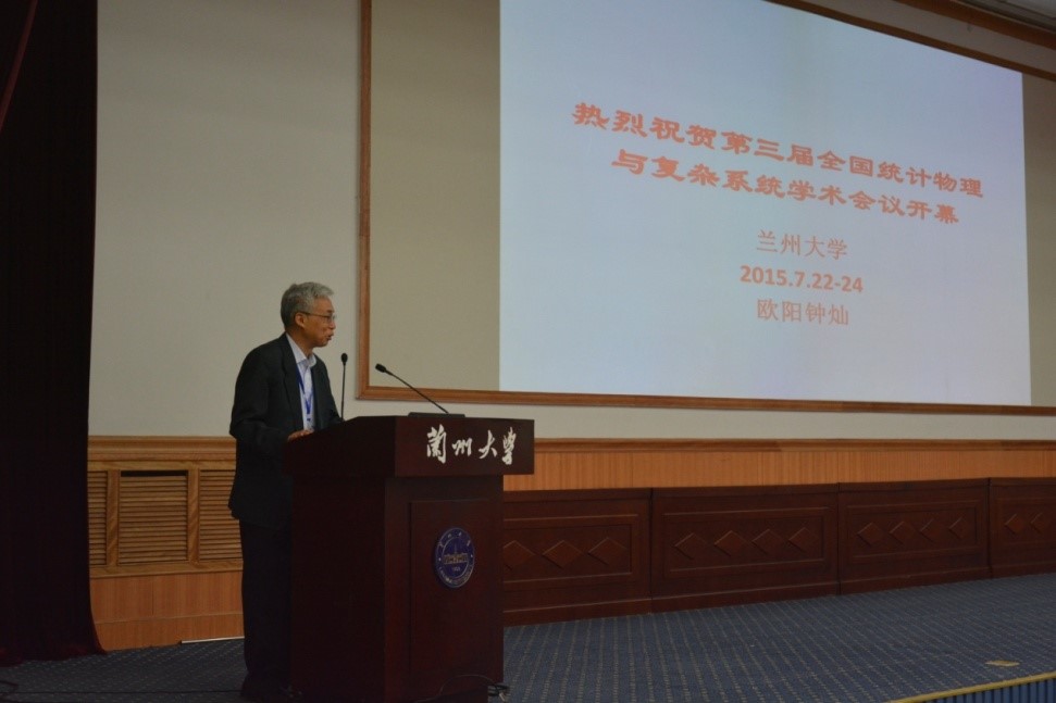 陈晓松副所长主持。 图为兰州大学副校长陈发虎致辞, 王宜森 摄  图为中科院理论物理所欧阳钟灿院士致辞,程可 摄 会议主要以邀请报告、口头报告及张贴报告的形式,针对统计物理与复杂系统中的平衡和非平衡相变与临界现象,自旋玻璃、神经网络及阻挫系统的统计物理,液态物理、高分子物理和颗粒物质,复杂网络及其相关统计物理问题,统计物理在化学、生物等领域中的应用,社会、金融等领域中的复杂系统及相关统计物理问题,七个主要方向进行交流讨论。同时讨论了中国统计物理与复杂系统研究的现状与发展。据统计,参加此次会议的海内外高校老师及学者共460余人,其中教授100余人。报告99场,其中大会报告18场,三个分会场的报告81场;70余人张贴报告,其中有10人获得优秀张贴报告奖。  图为美国Arizona州立大学来颖诚教授做大会报告,喻佩 摄 大会闭幕式由北京师范大学胡岗教授主持,ld体育网页端