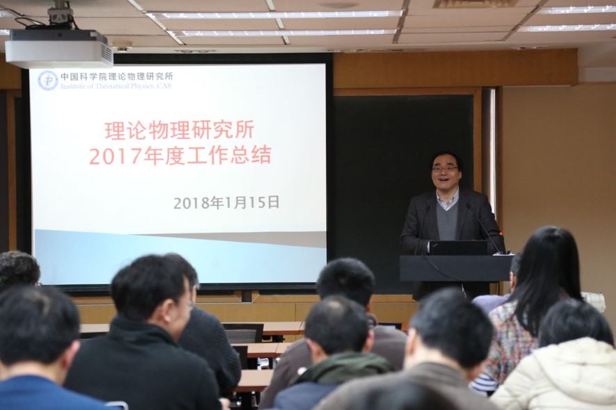 1月15日,理论物理所召开了第六届职工大会暨第八届工会委员会第六次全体会议。会议审议了2017年研究所工作进展报告及财务资产报告、所工会工作报告及财务报告,全所职工、博士后50多人参加会议,大会由副所长王延颋主持。 蔡荣根所长代表所领导班子向职工大会作了2017年工作报告及财务资产报告。报告从研究所科研工作进展、人才队伍建设、财务运行情况、党建与文化建设等方面总结了一年工作进展情况,明确了研究所2018年的主要工作。