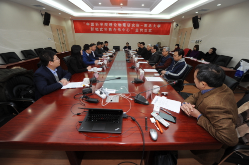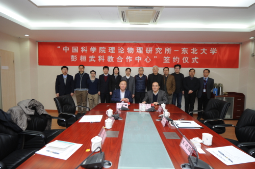 —东北大学彭桓武科教合作中心”的筹建过程、中心运作计划等情况。 签约结束后,双方围绕彭桓武中心建设,高等教育改革等话题进行了座谈,理论物理所欧阳钟灿院士,张肇西院士,东北大学理学院院长徐章润教授先后讲话,大家表示很高兴看到双方签署这样的合作协议,并为中心的运作提出了许多很好的建议。双方强调,要以签署合作协议为契机,把此次座谈交流碰撞出的火花切实落到实处,实现实质的合作和共赢,将彭桓武科教合作中心扎扎实实办好。 理论物理所研究室,院重点实验室,彭桓武理论物理创新研究中心,综合处,科研处,人事教育处,东北大学物理系等相关负责人参加了签约仪式。