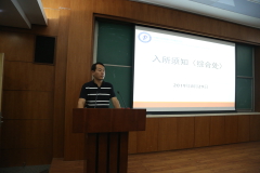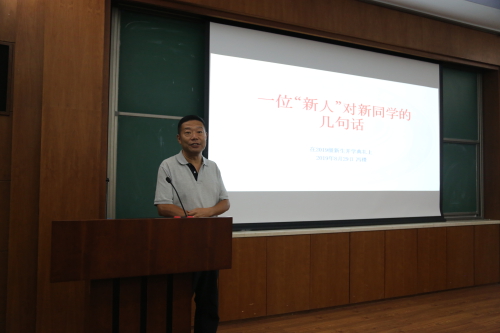 典礼以纪念理论物理所建所四十周年短片开始。随后王延颋老师向新生们介绍了研究所的历史沿革、发展定位、研究领域及方向、研究成果及影响、国际合作与交流、组织架构、教师队伍、研究生培养等各方面情况。作为一位经验丰富的导师,他鼓励即将步入科研事业的同学们思圆行方、勇于创新,敢于“尝试”,注重解析推导与计算模拟能力的共同培养。他还特别提醒同学们要强健体魄,健康的身体是做好一切工作的基础。